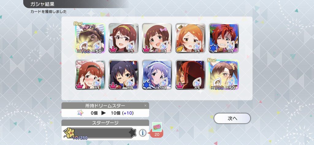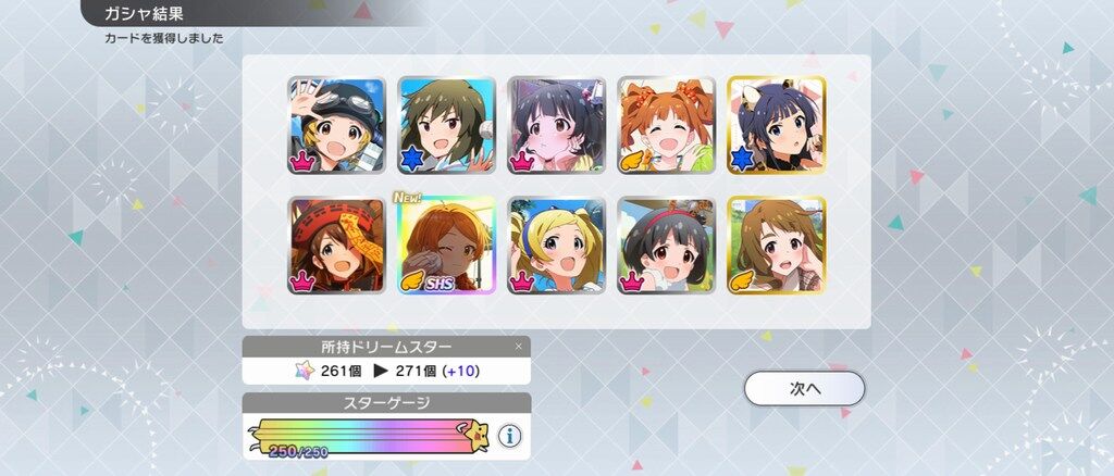 250まで来たけど恒常2枚眼鏡未来ちゃ2枚でお腹痛くなってきた