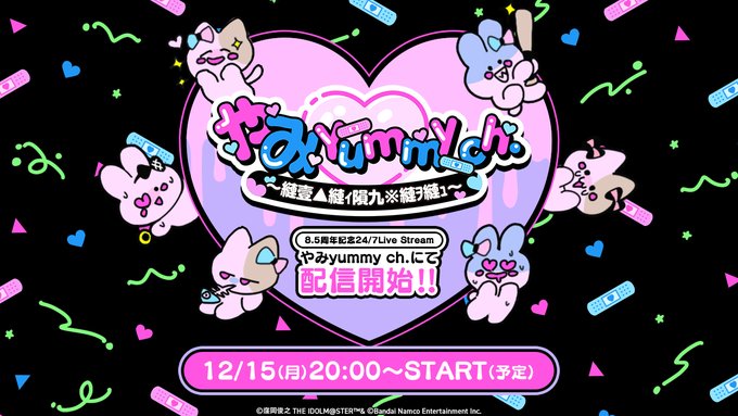 ミリシタ8.5周年は、BATTLE OF MASCOTを制したやみらび率いる、 やみらびとやみねこが「宣伝おてつだいマスコット」に就任!! やみyummy ch.より特別なMV集を24時間ノンストップで配信いたします✨ ミリシタでの様々な思い出を同僚の皆さんとワイワイ盛り上がりながら、ぜひお楽しみください♪